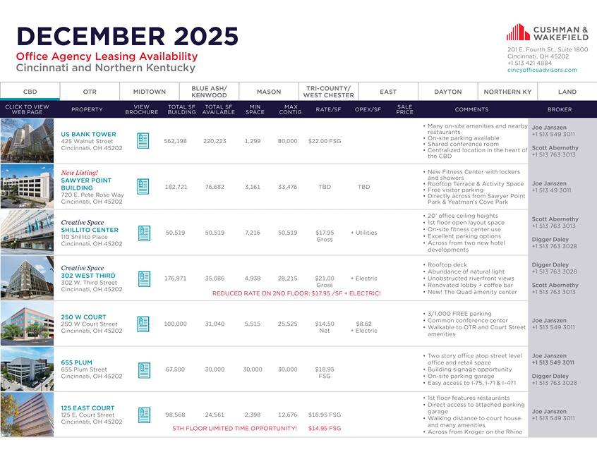 Take a look at our current office agency leasing availability in Cincinnati and Northern Kentucky.